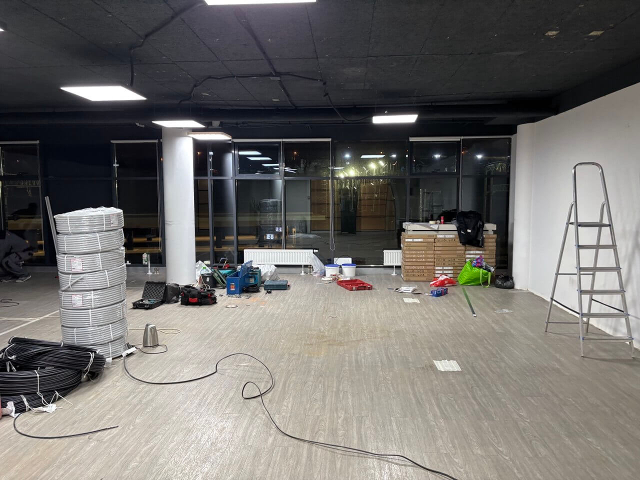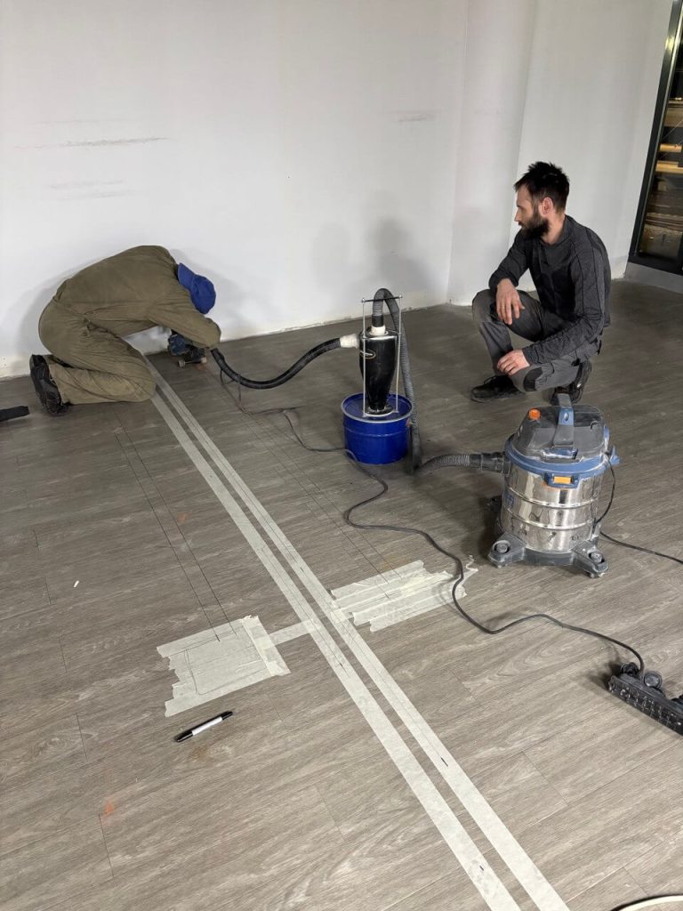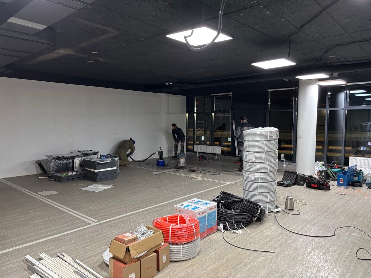 К нам обратилась компания с который мы уже проводили совместные работы, выступая в роли подрядчика по электромонтажным работам. Задача: провести электромонтажные работы по дизайн проекту в действующем офисном здании. Предоставили всю документацию и материл, согласовали доступ в здание 24 часа. Сейчас начались подготовительные работы: демонтаж старой проводки, резка полов и стен, подготовка трас для прокладки кабеля.
