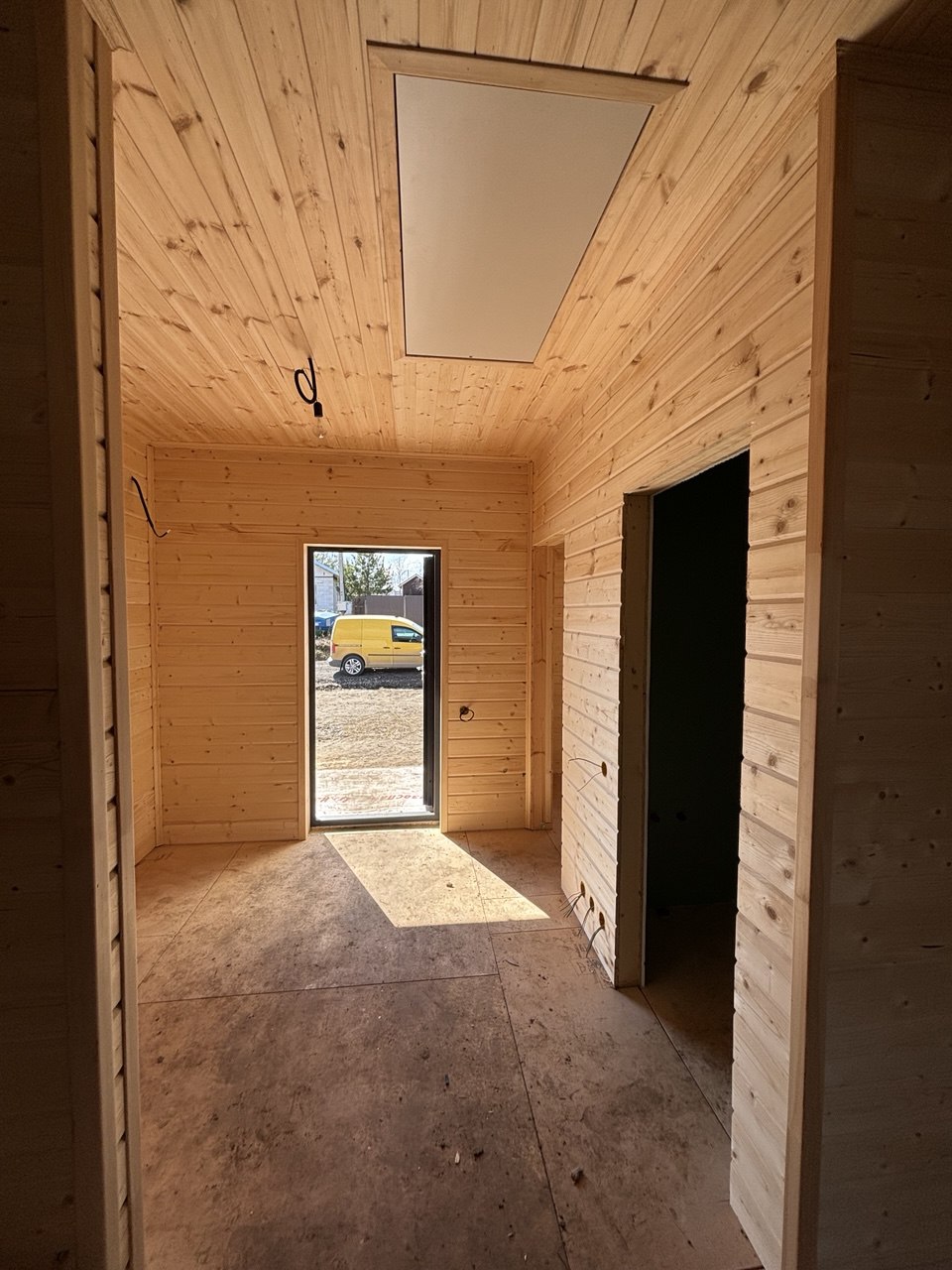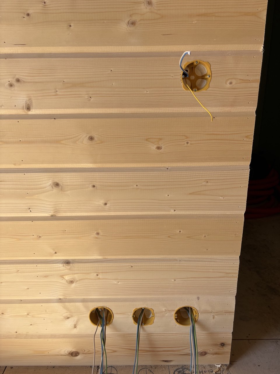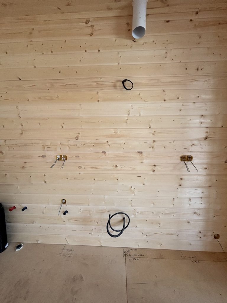 Одноэтажный каркасный дом 140 м2 на свайном фундаменте. Монтаж электрики выполнялся не заходя в теплый контур, между имитацией бруса и мембраной, закрывающей теплый контур.