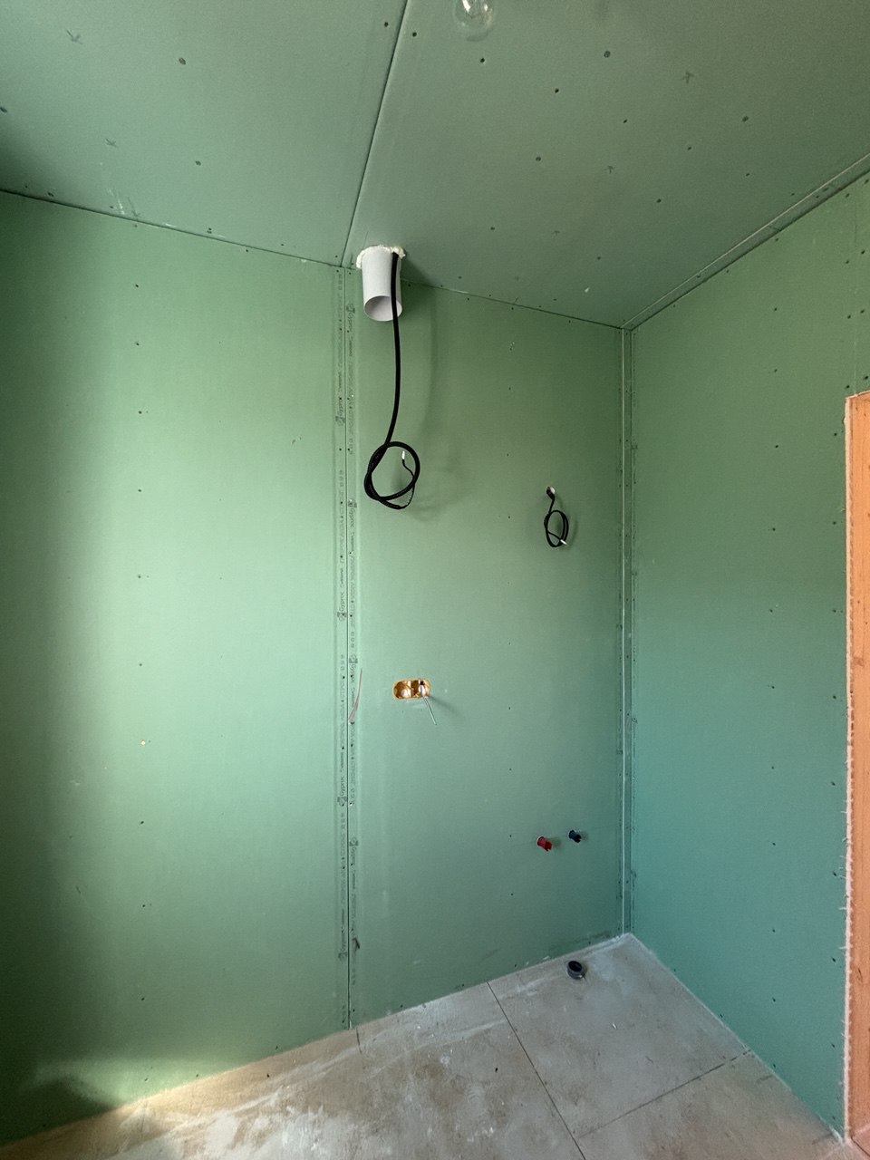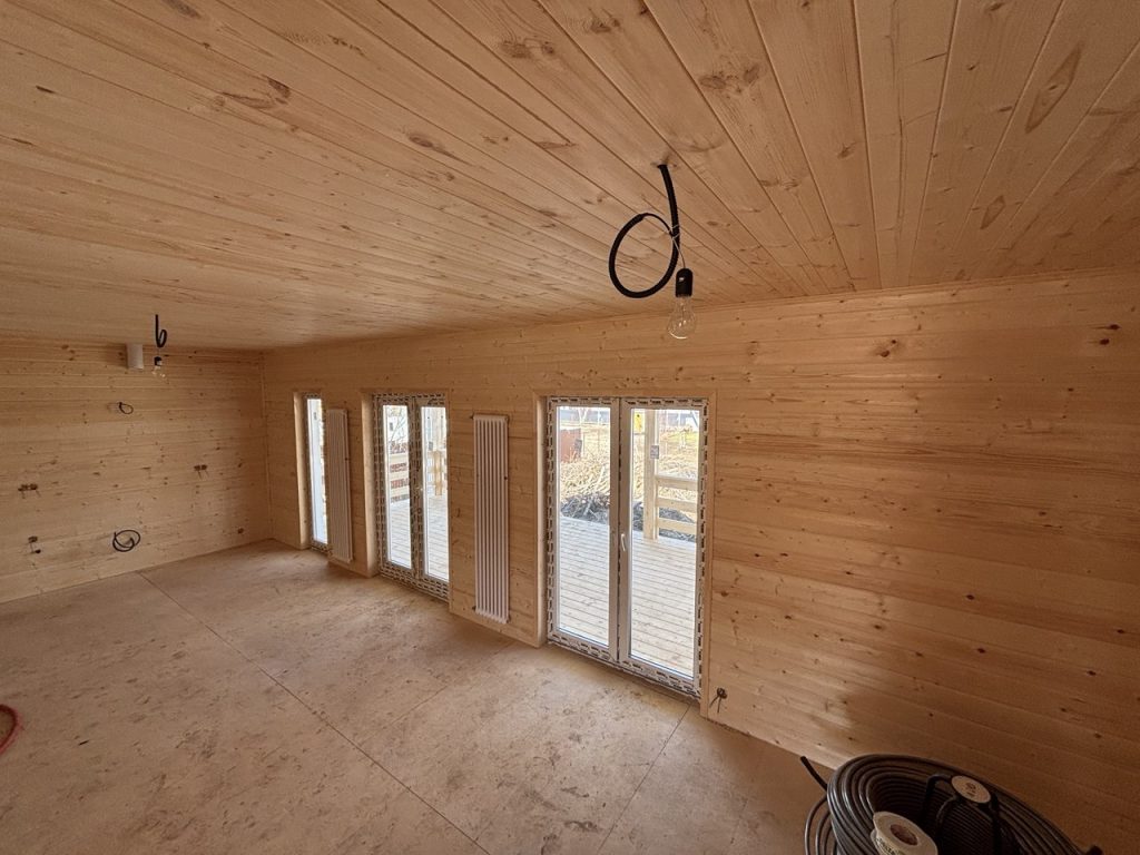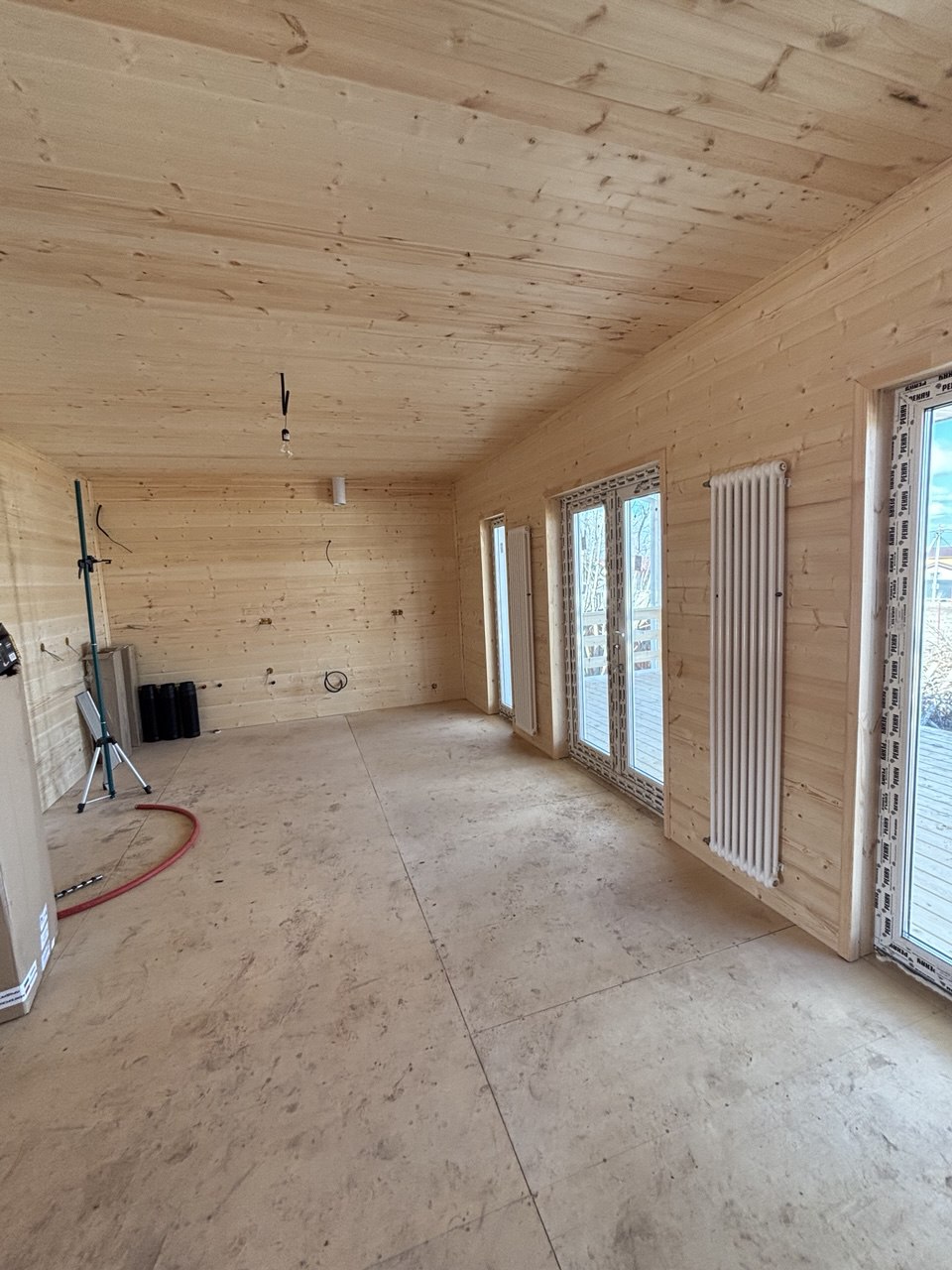 Одноэтажный каркасный дом 140 м2 на свайном фундаменте. Монтаж электрики выполнялся не заходя в теплый контур, между имитацией бруса и мембраной, закрывающей теплый контур.