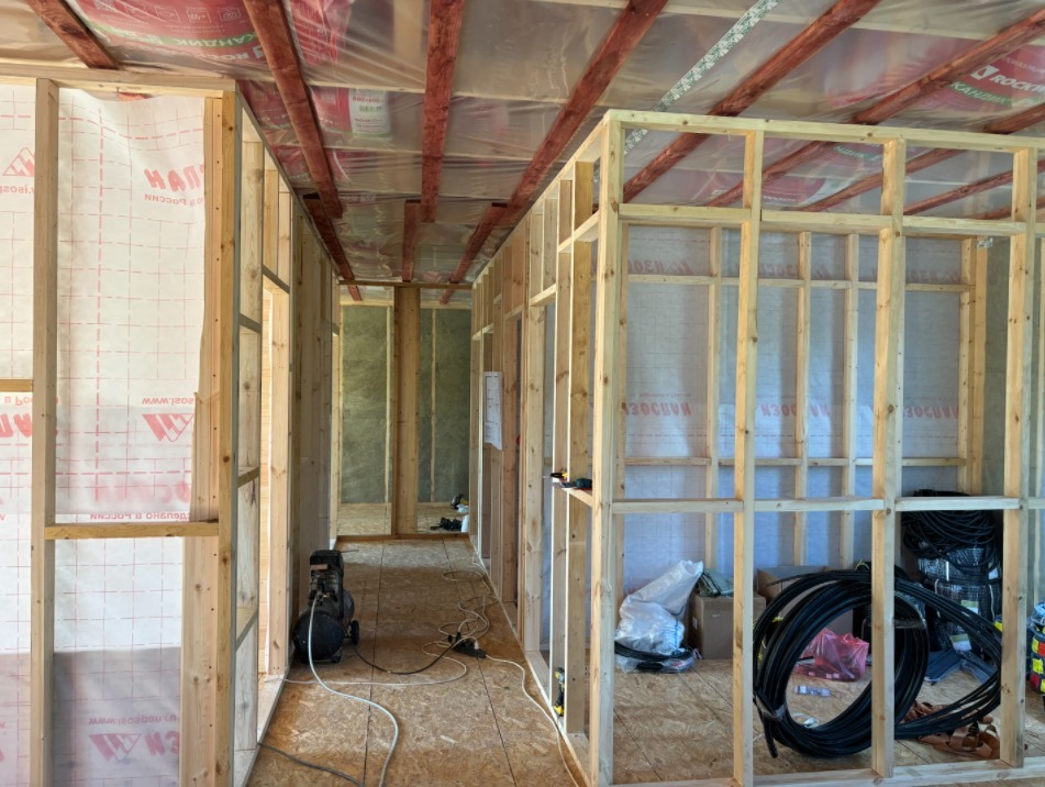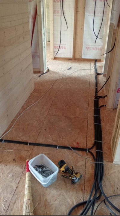 Прокладка по полу и потолку, будет стяжка (теплый пол).