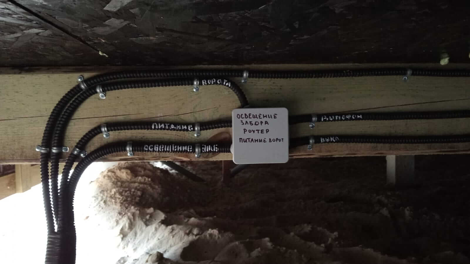Каркасный дом, фундамент — сваи ЖБ. Осуществляем прокладку дополнительных линий, согласно заявке заказчика. Работы проводятся уже после завершения строительства.