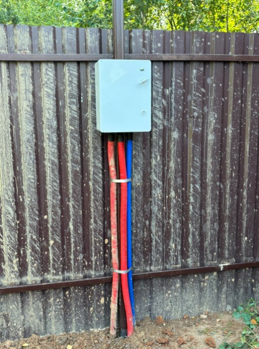 Входящая линия (от столба до дома) проходит через этот щит. Теперь есть возможность подключить внешние линии без прокладки кабеля из дома.
