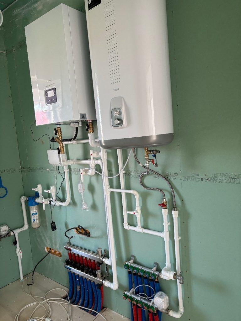 В него вошли такие работы как: монтаж стойки для кабеля через дорогу, ввод в дом в земле, прокладка трубы для интернета от стойки до котельной, заземление загородного дома и прочее.